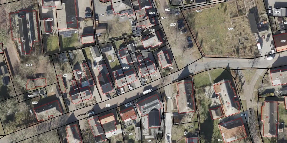 Pompstraat 21 is gelegen op kadastraal perceel NOR00R319. Deze kadastrale aanduiding is uniek en wordt gebruikt door het Kadaster om eigendomsrechten en andere zakelijke rechten vast te leggen. Het perceel maakt onderdeel uit van de kadastrale gemeente Norg.