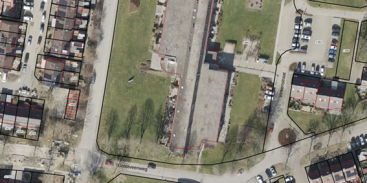 Het perceel waarop Vinkenstraat 23 staat heeft een oppervlakte van 9455 m². Dit is een zeer groot perceel. De perceeloppervlakte wordt geregistreerd door het Kadaster. Gedetailleerde informatie over de maten van dit perceel kunt u vinden in het rapport Kadastrale kaart met maatvoering van Vinkenstraat 23.