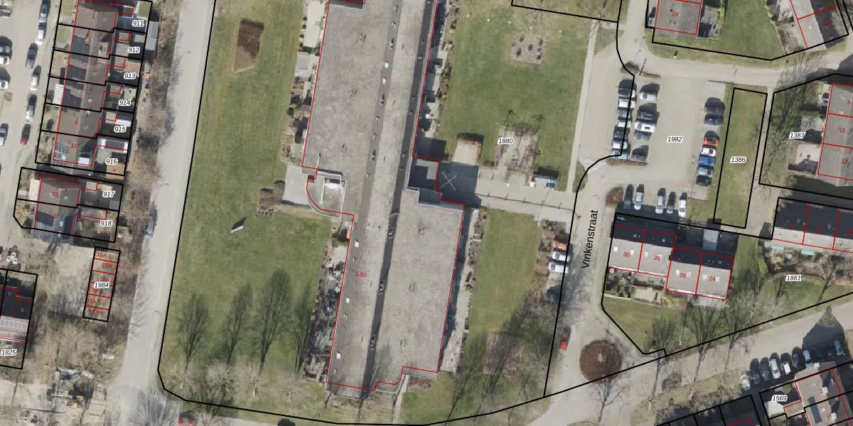 Het perceel waarop Vinkenstraat 27 staat heeft een oppervlakte van 9455 m². Dit is een zeer groot perceel. De perceeloppervlakte wordt geregistreerd door het Kadaster. Gedetailleerde informatie over de maten van dit perceel kunt u vinden in het rapport Kadastrale kaart met maatvoering van Vinkenstraat 27.