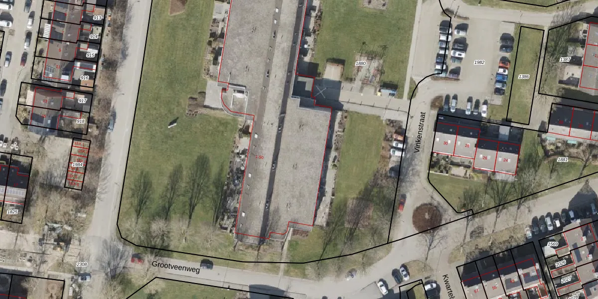 Het perceel waarop Vinkenstraat 31 staat heeft een oppervlakte van 9455 m². Dit is een zeer groot perceel. De perceeloppervlakte wordt geregistreerd door het Kadaster. Gedetailleerde informatie over de maten van dit perceel kunt u vinden in het rapport Kadastrale kaart met maatvoering van Vinkenstraat 31.