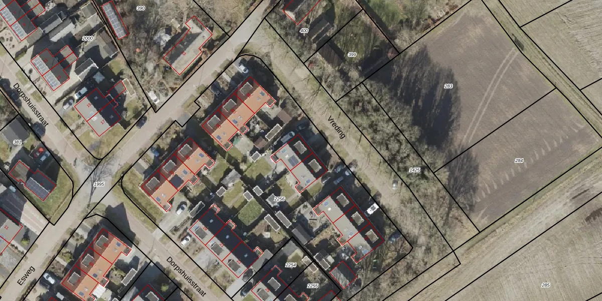 Vreding 2 is gelegen op kadastraal perceel NOR00R2256. Deze kadastrale aanduiding is uniek en wordt gebruikt door het Kadaster om eigendomsrechten en andere zakelijke rechten vast te leggen. Het perceel maakt onderdeel uit van de kadastrale gemeente Norg.