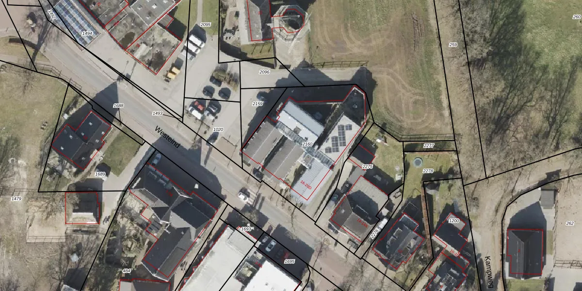 Het perceel waarop Westeind 20 staat heeft een oppervlakte van 1325 m². Dit is een zeer groot perceel. De perceeloppervlakte wordt geregistreerd door het Kadaster. Gedetailleerde informatie over de maten van dit perceel kunt u vinden in het rapport Kadastrale kaart met maatvoering van Westeind 20.