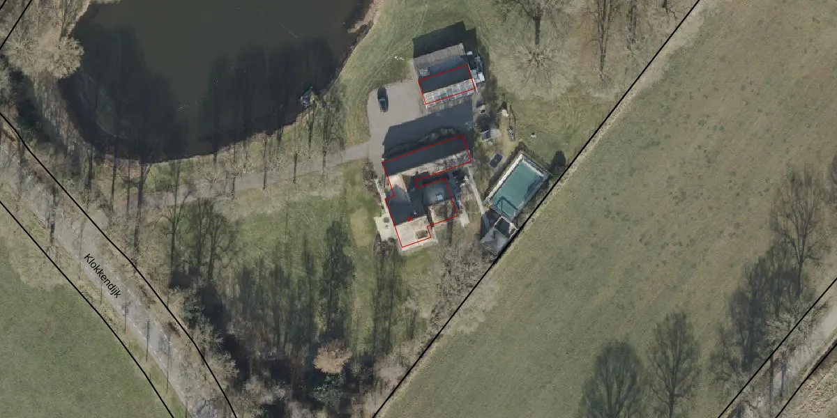 Het perceel waarop Klokkendijk 50 staat heeft een oppervlakte van 2,2 ha. Dit is een zeer groot perceel. De perceeloppervlakte wordt geregistreerd door het Kadaster. Gedetailleerde informatie over de maten van dit perceel kunt u vinden in het rapport Kadastrale kaart met maatvoering van Klokkendijk 50.