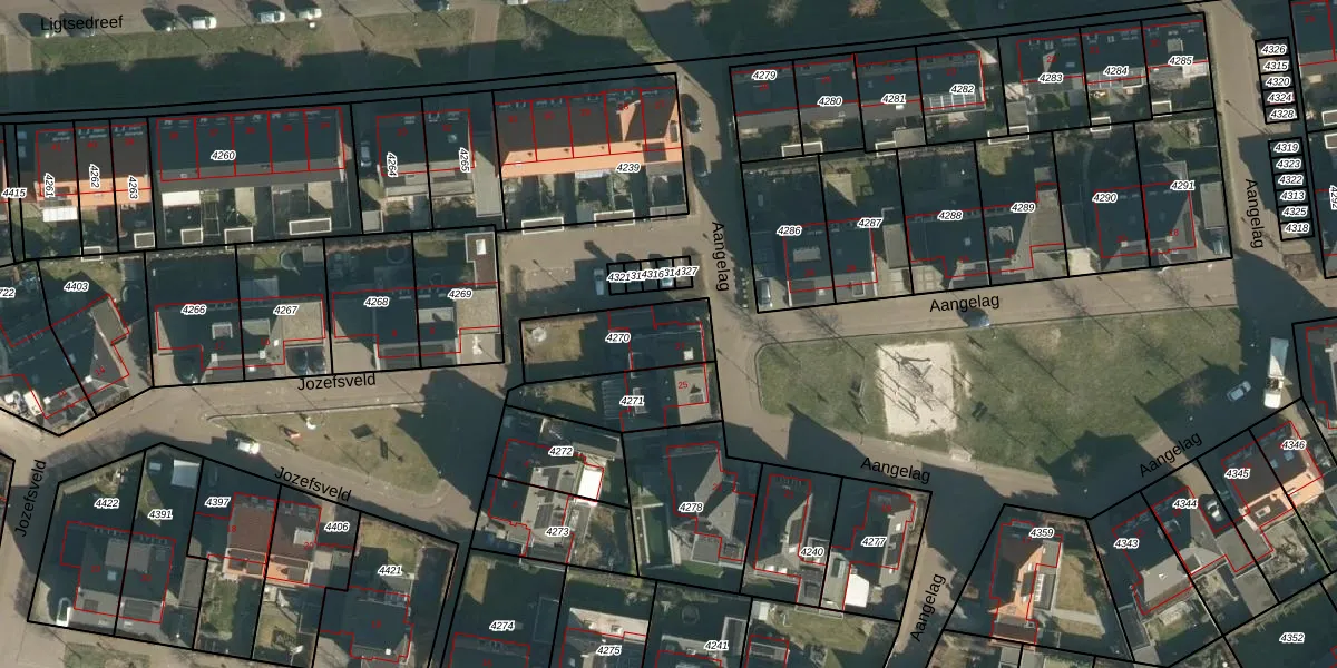 Gebruik de zoekbalk of klik op een perceel voor informatie over de adressen binnen dit perceel.