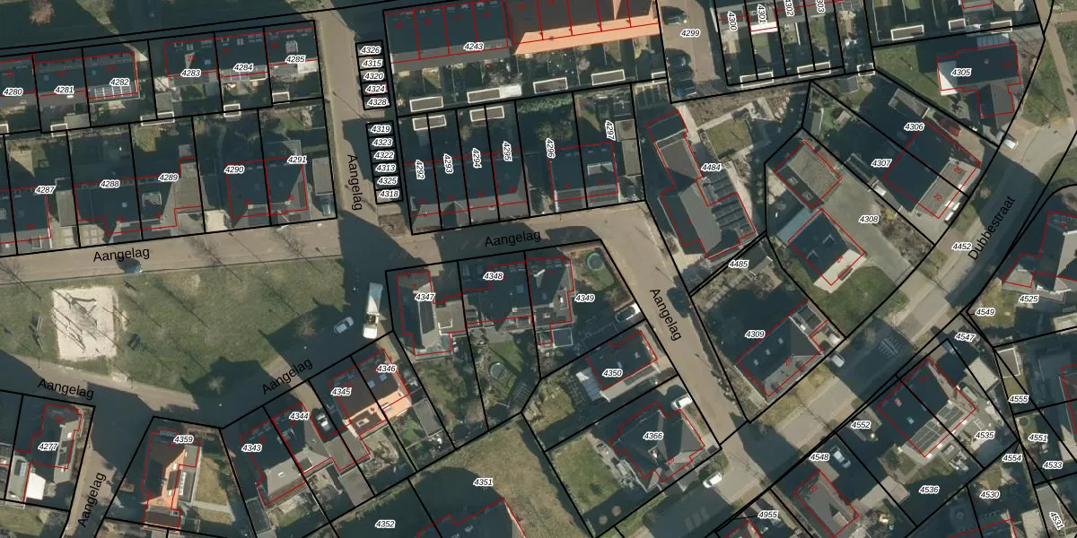 Het perceel waarop Aangelag 3 staat heeft een oppervlakte van 364 m². Dit is een groot perceel. De perceeloppervlakte wordt geregistreerd door het Kadaster. Gedetailleerde informatie over de maten van dit perceel kunt u vinden in het rapport Kadastrale kaart met maatvoering van Aangelag 3.