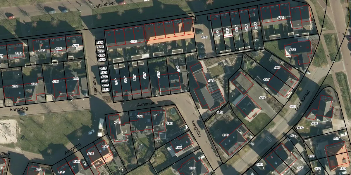 Het perceel waarop Aangelag 6 staat heeft een oppervlakte van 240 m². Dit is een middelgroot perceel. De perceeloppervlakte wordt geregistreerd door het Kadaster. Gedetailleerde informatie over de maten van dit perceel kunt u vinden in het rapport Kadastrale kaart met maatvoering van Aangelag 6.