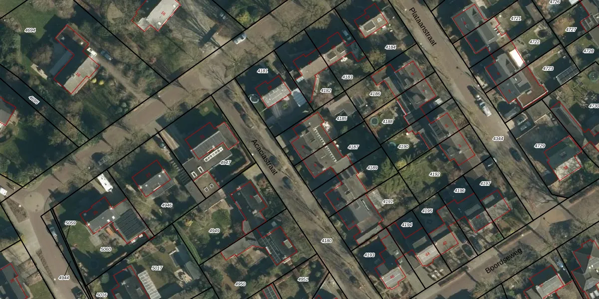 Gebruik de zoekbalk of klik op een perceel voor informatie over de adressen binnen dit perceel.