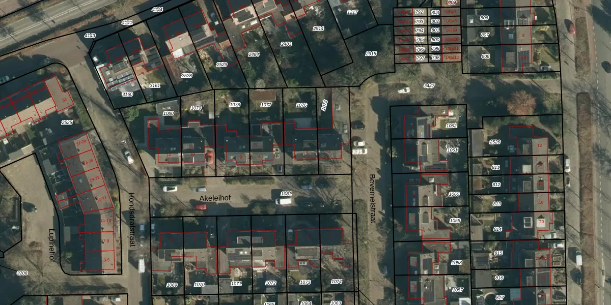 Het perceel waarop Akeleihof 4 staat heeft een oppervlakte van 319 m². Dit is een groot perceel. De perceeloppervlakte wordt geregistreerd door het Kadaster. Gedetailleerde informatie over de maten van dit perceel kunt u vinden in het rapport Kadastrale kaart met maatvoering van Akeleihof 4.