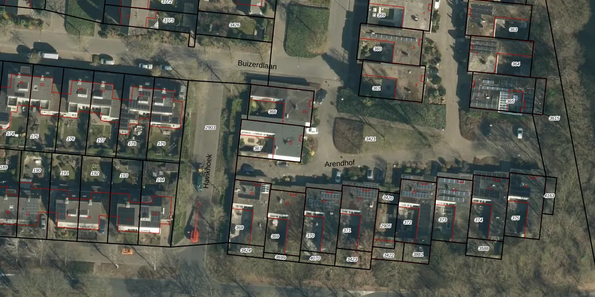 Het perceel waarop Arendhof 12 staat heeft een oppervlakte van 261 m². Dit is een middelgroot perceel. De perceeloppervlakte wordt geregistreerd door het Kadaster. Gedetailleerde informatie over de maten van dit perceel kunt u vinden in het rapport Kadastrale kaart met maatvoering van Arendhof 12.