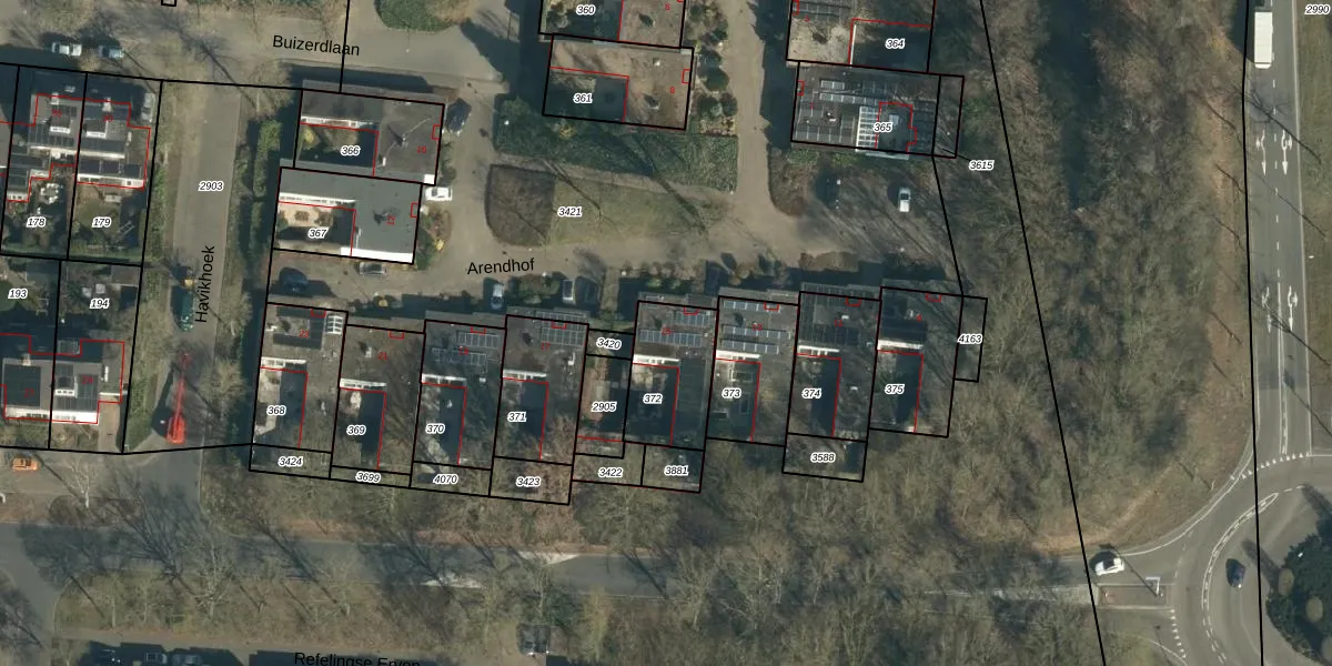 Gebruik de zoekbalk of klik op een perceel voor informatie over de adressen binnen dit perceel.