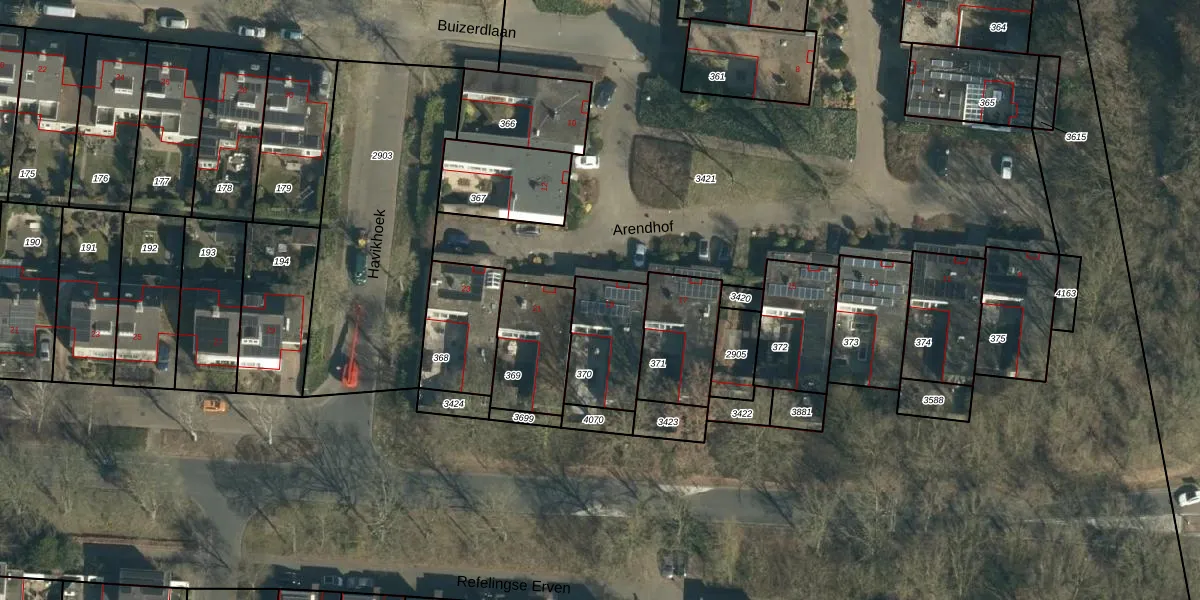 Het perceel waarop Arendhof 19 staat heeft een oppervlakte van 256 m². Dit is een middelgroot perceel. De perceeloppervlakte wordt geregistreerd door het Kadaster. Gedetailleerde informatie over de maten van dit perceel kunt u vinden in het rapport Kadastrale kaart met maatvoering van Arendhof 19.