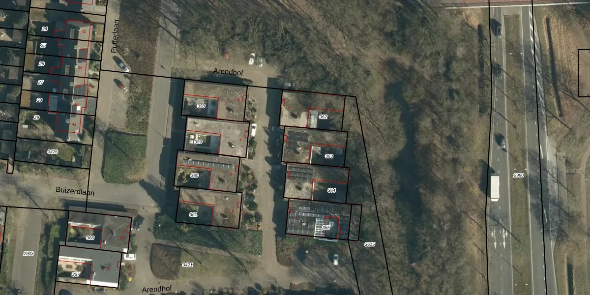 Het perceel waarop Arendhof 3 staat heeft een oppervlakte van 256 m². Dit is een middelgroot perceel. De perceeloppervlakte wordt geregistreerd door het Kadaster. Gedetailleerde informatie over de maten van dit perceel kunt u vinden in het rapport Kadastrale kaart met maatvoering van Arendhof 3.