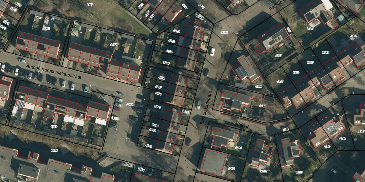 Gebruik de zoekbalk of klik op een perceel voor informatie over de adressen binnen dit perceel.