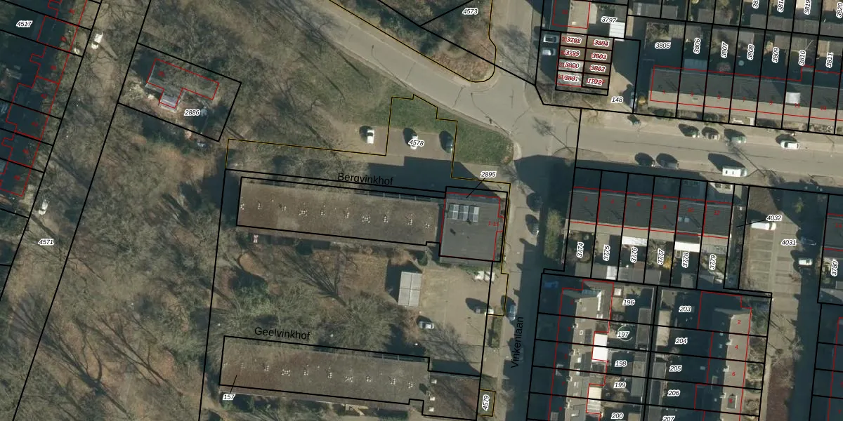 Bergvinkhof 54 is gelegen op kadastraal perceel NNN00F2895. Deze kadastrale aanduiding is uniek en wordt gebruikt door het Kadaster om eigendomsrechten en andere zakelijke rechten vast te leggen. Het perceel maakt onderdeel uit van de kadastrale gemeente Nuenen.