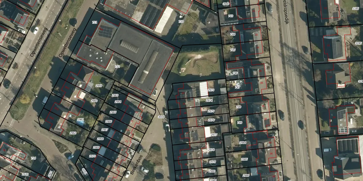 Gebruik de zoekbalk of klik op een perceel voor informatie over de adressen binnen dit perceel.