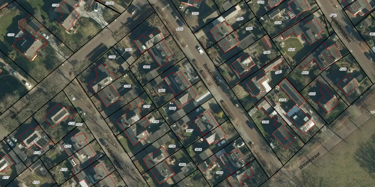 Gebruik de zoekbalk of klik op een perceel voor informatie over de adressen binnen dit perceel.