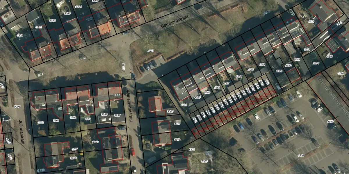 Bernhardstraat 14 is gelegen op kadastraal perceel NNN00E4591. Deze kadastrale aanduiding is uniek en wordt gebruikt door het Kadaster om eigendomsrechten en andere zakelijke rechten vast te leggen. Het perceel maakt onderdeel uit van de kadastrale gemeente Nuenen.