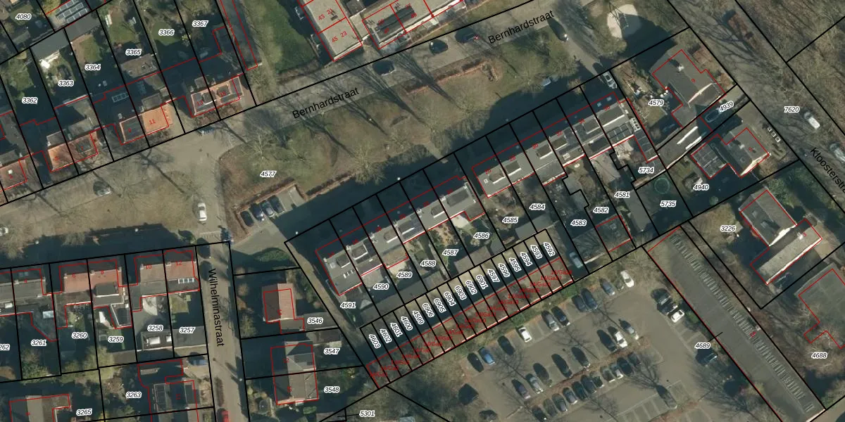 Bernhardstraat 22 is gelegen op kadastraal perceel NNN00E4587. Deze kadastrale aanduiding is uniek en wordt gebruikt door het Kadaster om eigendomsrechten en andere zakelijke rechten vast te leggen. Het perceel maakt onderdeel uit van de kadastrale gemeente Nuenen.