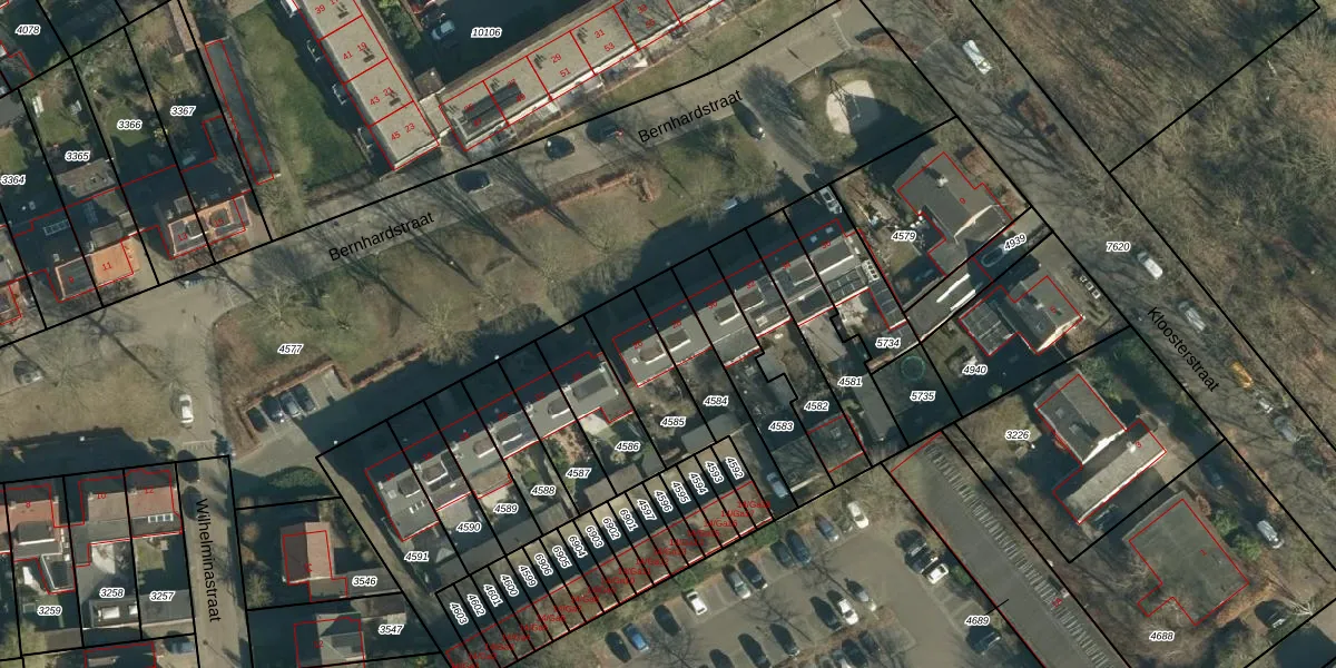 Bernhardstraat 28 is gelegen op kadastraal perceel NNN00E4584. Deze kadastrale aanduiding is uniek en wordt gebruikt door het Kadaster om eigendomsrechten en andere zakelijke rechten vast te leggen. Het perceel maakt onderdeel uit van de kadastrale gemeente Nuenen.