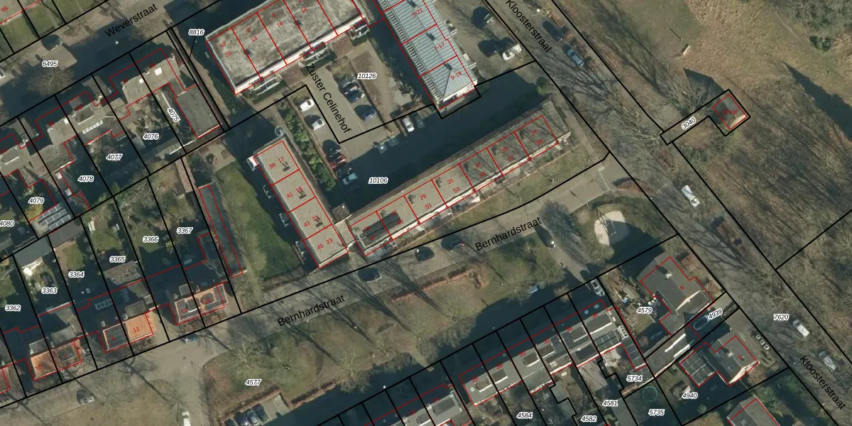 Het perceel waarop Bernhardstraat 29 staat heeft een oppervlakte van 3089 m². Dit is een zeer groot perceel. De perceeloppervlakte wordt geregistreerd door het Kadaster. Gedetailleerde informatie over de maten van dit perceel kunt u vinden in het rapport Kadastrale kaart met maatvoering van Bernhardstraat 29.