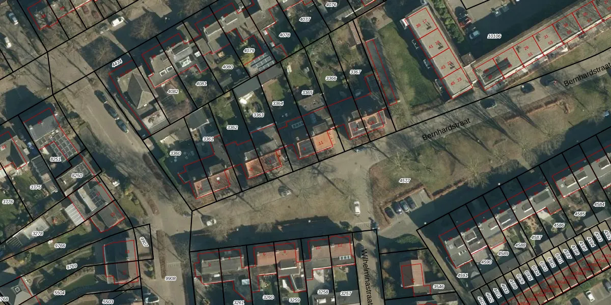 Bernhardstraat 9 is gelegen op kadastraal perceel NNN00E3364. Deze kadastrale aanduiding is uniek en wordt gebruikt door het Kadaster om eigendomsrechten en andere zakelijke rechten vast te leggen. Het perceel maakt onderdeel uit van de kadastrale gemeente Nuenen.