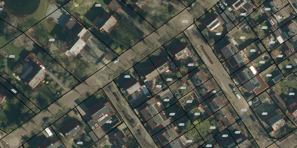 Gebruik de zoekbalk of klik op een perceel voor informatie over de adressen binnen dit perceel.