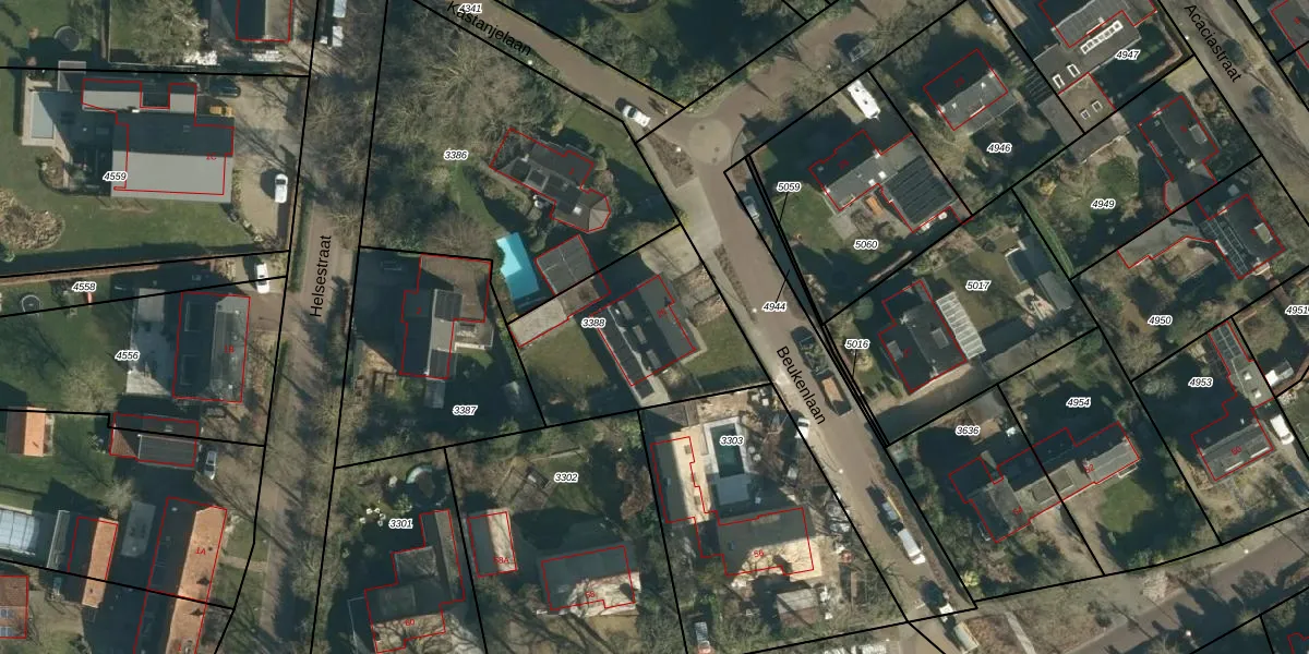 Het adres ligt op het perceel NNN00-E-3388, dat zich in de kadastrale gemeente Nuenen bevindt. Het perceel is 733 m² groot. Dat is kleiner dan de gemiddelde perceeloppervlakte in Nuenen, dat op 2267,13 m² ligt. Het kleinste perceel in de kadastrale gemeente is 0 m² groot. De grootste perceeloppervlakte is 27,9 ha. Dit is het enige adres dat aanwezig is op het perceel. In de Basisregistratie Kadaster (BRK) werden de grenzen van het perceel geregistreerd op 31-08-2009.