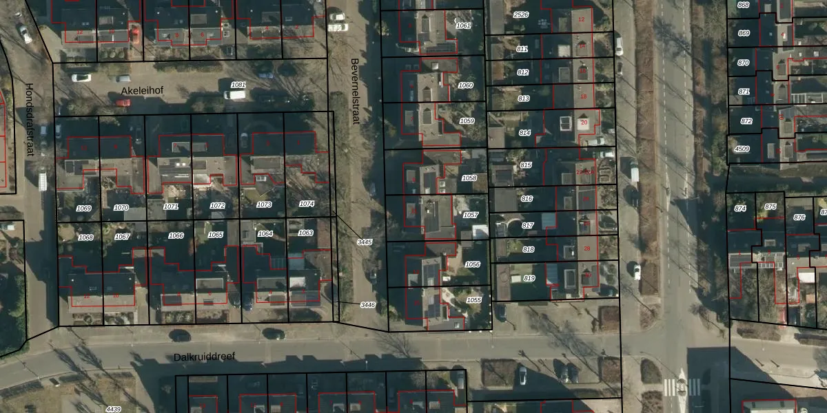 Gebruik de zoekbalk of klik op een perceel voor informatie over de adressen binnen dit perceel.