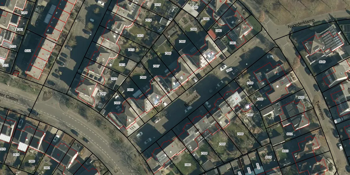 Het perceel waarop Biesveld 7 staat heeft een oppervlakte van 306 m². Dit is een groot perceel. De perceeloppervlakte wordt geregistreerd door het Kadaster. Gedetailleerde informatie over de maten van dit perceel kunt u vinden in het rapport Kadastrale kaart met maatvoering van Biesveld 7.