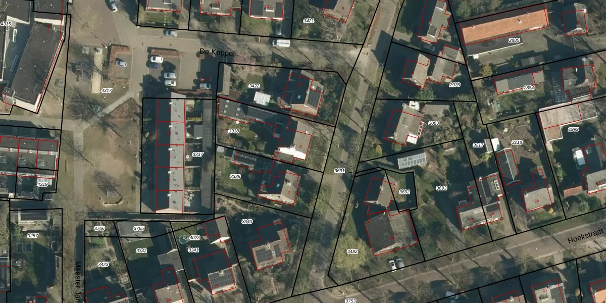 Het perceel waarop Bloemhoefstraat 5 staat heeft een oppervlakte van 598 m². Dit is een groot perceel. De perceeloppervlakte wordt geregistreerd door het Kadaster. Gedetailleerde informatie over de maten van dit perceel kunt u vinden in het rapport Kadastrale kaart met maatvoering van Bloemhoefstraat 5.