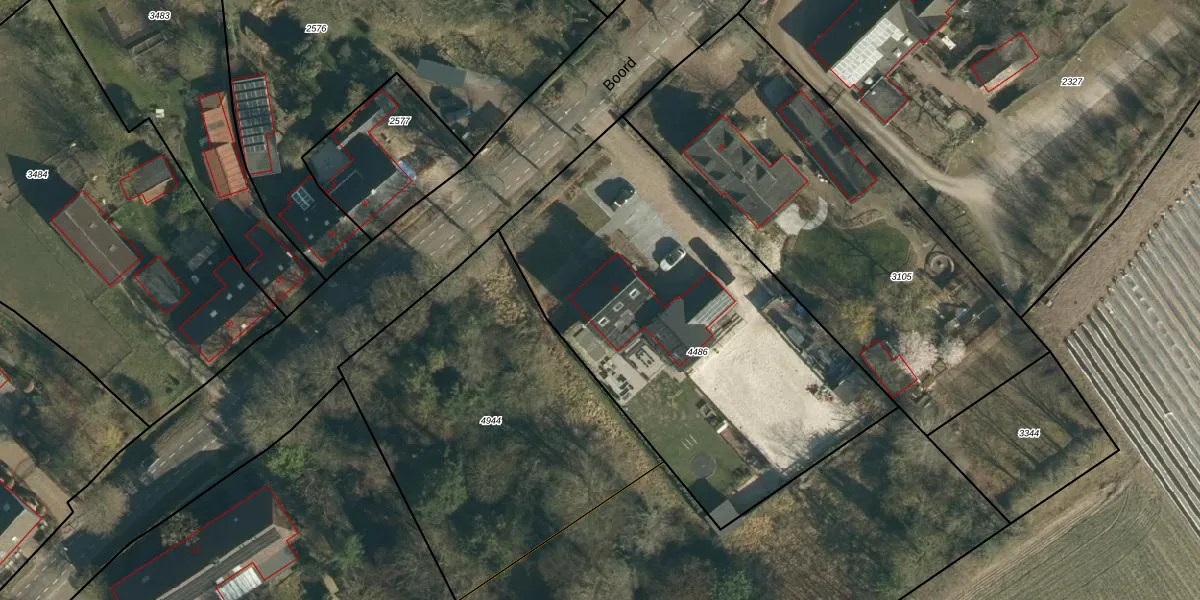 Het perceel waarop Boord 41 staat heeft een oppervlakte van 2130 m². Dit is een zeer groot perceel. De perceeloppervlakte wordt geregistreerd door het Kadaster. Gedetailleerde informatie over de maten van dit perceel kunt u vinden in het rapport Kadastrale kaart met maatvoering van Boord 41.