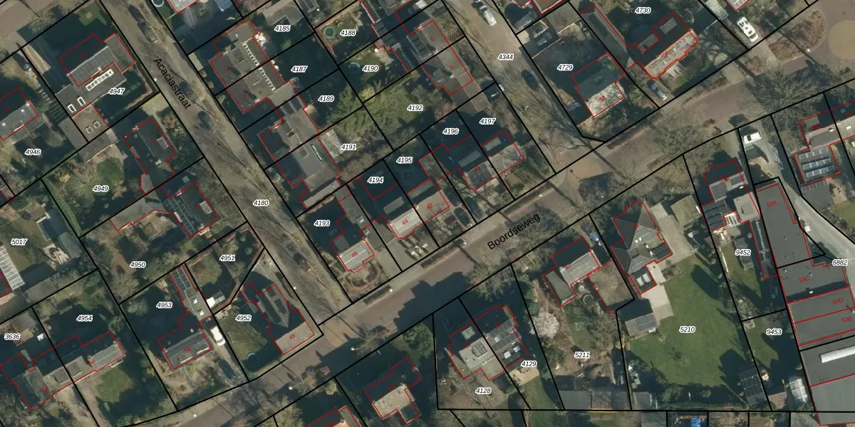 Het perceel waarop Boordseweg 42 staat heeft een oppervlakte van 260 m². Dit is een middelgroot perceel. De perceeloppervlakte wordt geregistreerd door het Kadaster. Gedetailleerde informatie over de maten van dit perceel kunt u vinden in het rapport Kadastrale kaart met maatvoering van Boordseweg 42.