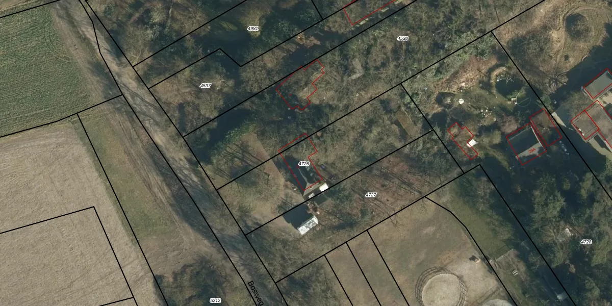 Het perceel waarop Bosweg 2 staat heeft een oppervlakte van 1265 m². Dit is een zeer groot perceel. De perceeloppervlakte wordt geregistreerd door het Kadaster. Gedetailleerde informatie over de maten van dit perceel kunt u vinden in het rapport Kadastrale kaart met maatvoering van Bosweg 2.