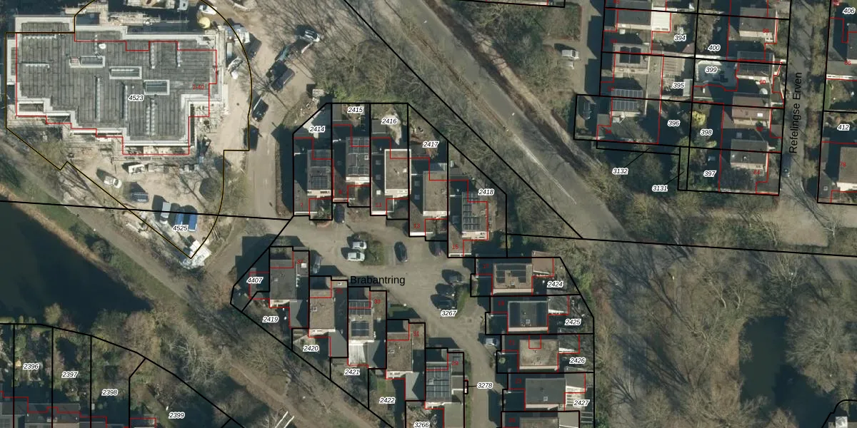 Het perceel waarop Brabantring 13 staat heeft een oppervlakte van 245 m². Dit is een middelgroot perceel. De perceeloppervlakte wordt geregistreerd door het Kadaster. Gedetailleerde informatie over de maten van dit perceel kunt u vinden in het rapport Kadastrale kaart met maatvoering van Brabantring 13.