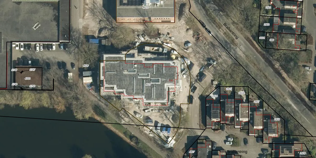 Het perceel waarop Brabantring 14 staat heeft een oppervlakte van 2128 m². Dit is een zeer groot perceel. De perceeloppervlakte wordt geregistreerd door het Kadaster. Gedetailleerde informatie over de maten van dit perceel kunt u vinden in het rapport Kadastrale kaart met maatvoering van Brabantring 14.