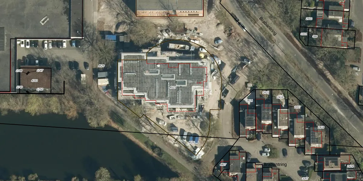 Het perceel waarop Brabantring 18 staat heeft een oppervlakte van 2128 m². Dit is een zeer groot perceel. De perceeloppervlakte wordt geregistreerd door het Kadaster. Gedetailleerde informatie over de maten van dit perceel kunt u vinden in het rapport Kadastrale kaart met maatvoering van Brabantring 18.