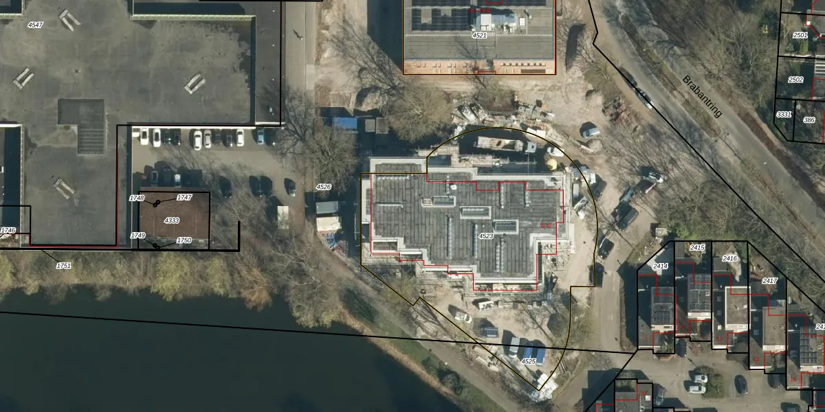 Het perceel waarop Brabantring 34 staat heeft een oppervlakte van 2128 m². Dit is een zeer groot perceel. De perceeloppervlakte wordt geregistreerd door het Kadaster. Gedetailleerde informatie over de maten van dit perceel kunt u vinden in het rapport Kadastrale kaart met maatvoering van Brabantring 34.