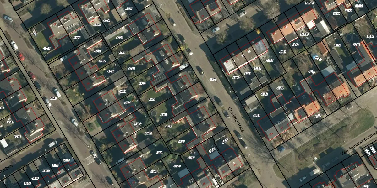 Gebruik de zoekbalk of klik op een perceel voor informatie over de adressen binnen dit perceel.