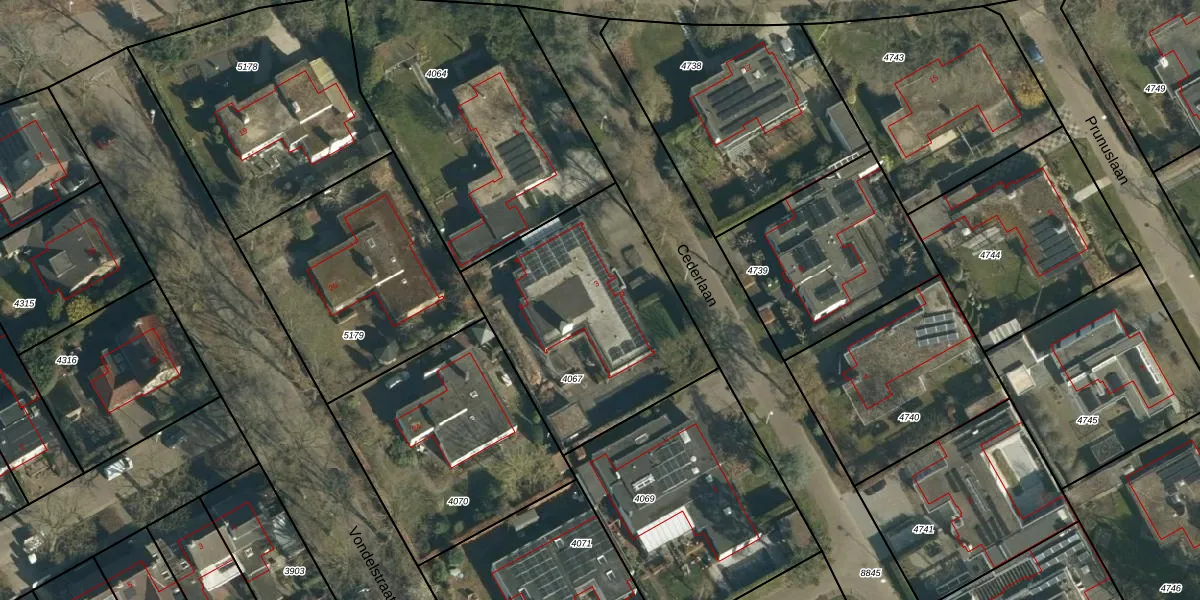 Het perceel waarop Cederlaan 3 staat heeft een oppervlakte van 1052 m². Dit is een zeer groot perceel. De perceeloppervlakte wordt geregistreerd door het Kadaster. Gedetailleerde informatie over de maten van dit perceel kunt u vinden in het rapport Kadastrale kaart met maatvoering van Cederlaan 3.