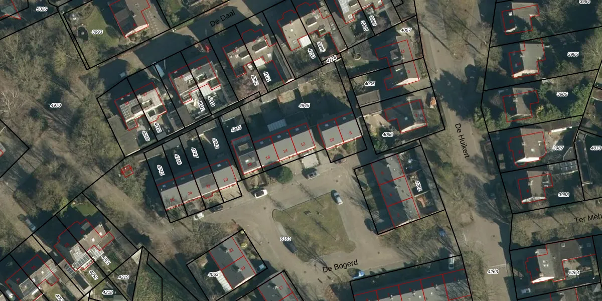 Het perceel waarop De Bogerd 12 staat heeft een oppervlakte van 945 m². Dit is een groot perceel. De perceeloppervlakte wordt geregistreerd door het Kadaster. Gedetailleerde informatie over de maten van dit perceel kunt u vinden in het rapport Kadastrale kaart met maatvoering van De Bogerd 12.