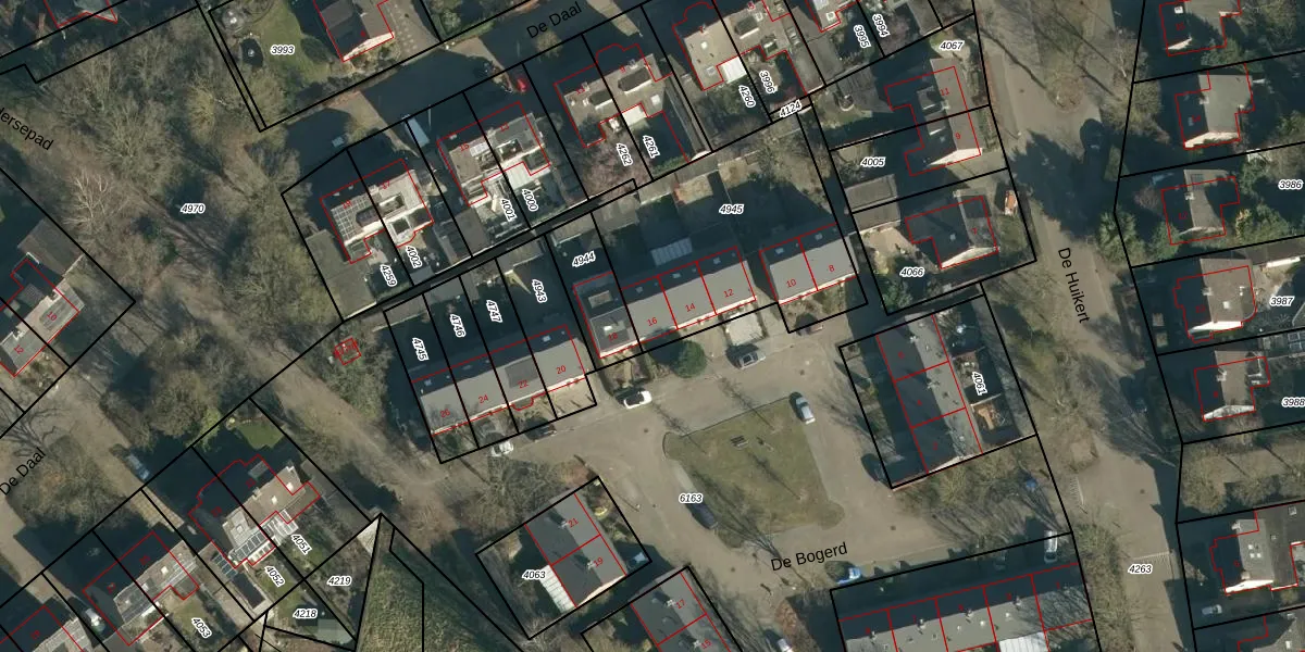 Het perceel waarop De Bogerd 16 staat heeft een oppervlakte van 945 m². Dit is een groot perceel. De perceeloppervlakte wordt geregistreerd door het Kadaster. Gedetailleerde informatie over de maten van dit perceel kunt u vinden in het rapport Kadastrale kaart met maatvoering van De Bogerd 16.