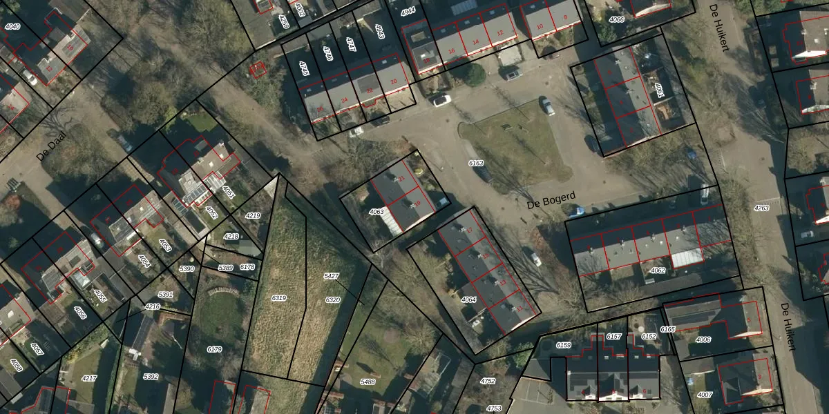 Het perceel waarop De Bogerd 19 staat heeft een oppervlakte van 341 m². Dit is een groot perceel. De perceeloppervlakte wordt geregistreerd door het Kadaster. Gedetailleerde informatie over de maten van dit perceel kunt u vinden in het rapport Kadastrale kaart met maatvoering van De Bogerd 19.