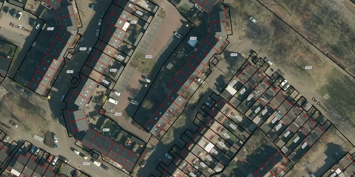 Het perceel waarop De Doorn 11 staat heeft een oppervlakte van 2665 m². Dit is een zeer groot perceel. De perceeloppervlakte wordt geregistreerd door het Kadaster. Gedetailleerde informatie over de maten van dit perceel kunt u vinden in het rapport Kadastrale kaart met maatvoering van De Doorn 11.