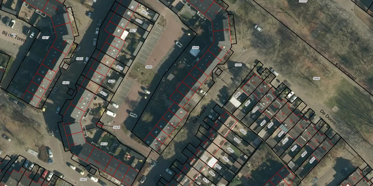 De Doorn 13 is gelegen op kadastraal perceel NNN00E5898. Deze kadastrale aanduiding is uniek en wordt gebruikt door het Kadaster om eigendomsrechten en andere zakelijke rechten vast te leggen. Het perceel maakt onderdeel uit van de kadastrale gemeente Nuenen.