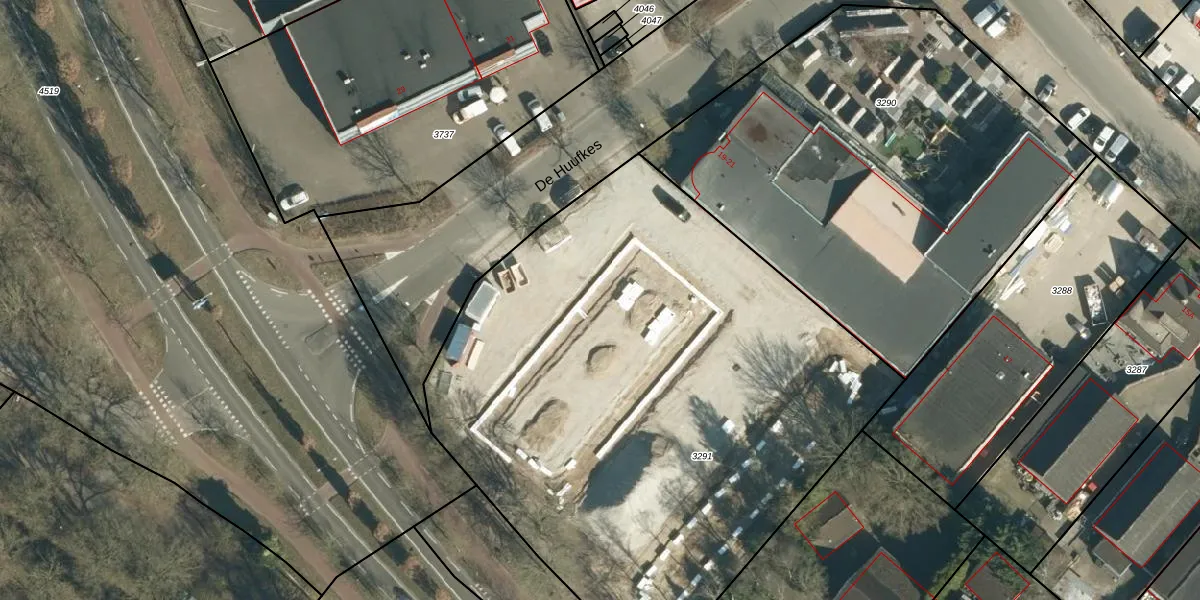 Het perceel waarop De Huufkes 23-03 staat heeft een oppervlakte van 3785 m². Dit is een zeer groot perceel. De perceeloppervlakte wordt geregistreerd door het Kadaster. Gedetailleerde informatie over de maten van dit perceel kunt u vinden in het rapport Kadastrale kaart met maatvoering van De Huufkes 23-03.