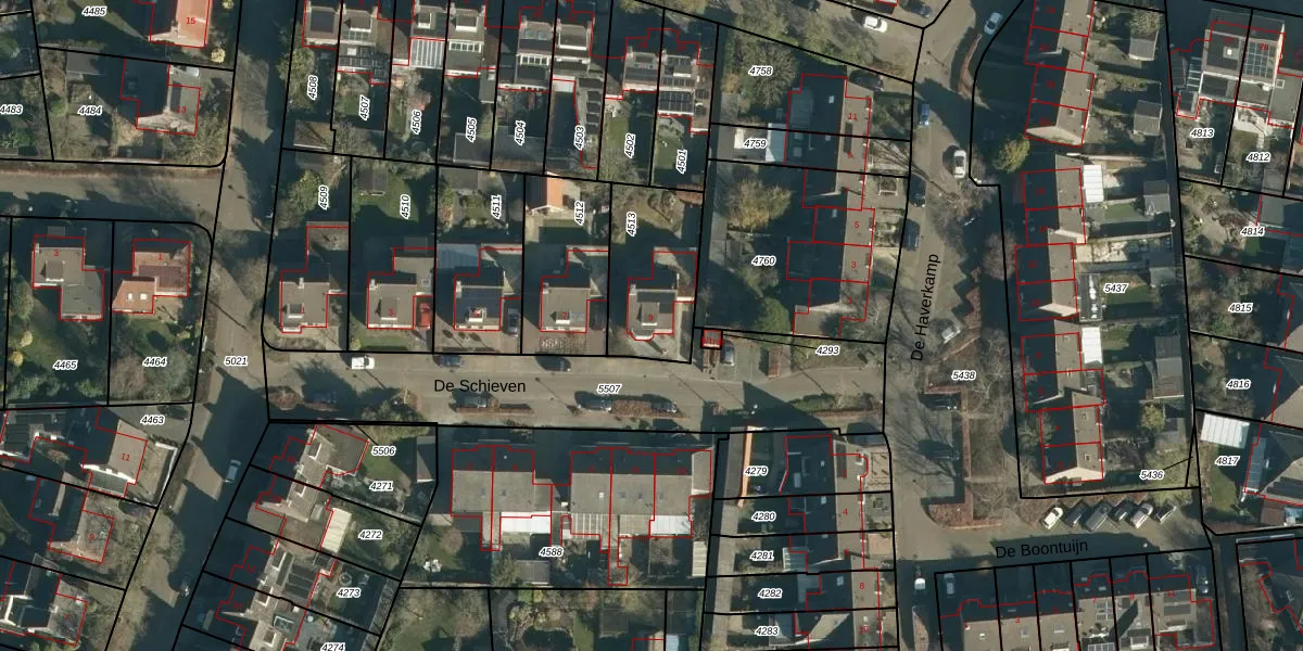 Het perceel waarop De Schieven 9 staat heeft een oppervlakte van 362 m². Dit is een groot perceel. De perceeloppervlakte wordt geregistreerd door het Kadaster. Gedetailleerde informatie over de maten van dit perceel kunt u vinden in het rapport Kadastrale kaart met maatvoering van De Schieven 9.