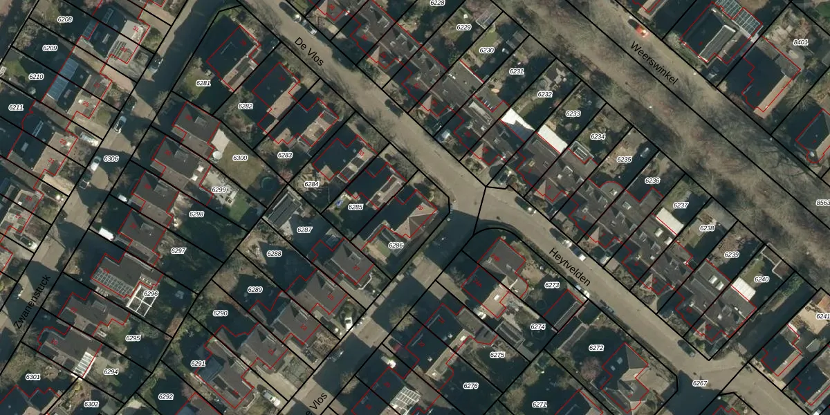 Het perceel waarop De Vlos 29 staat heeft een oppervlakte van 309 m². Dit is een groot perceel. De perceeloppervlakte wordt geregistreerd door het Kadaster. Gedetailleerde informatie over de maten van dit perceel kunt u vinden in het rapport Kadastrale kaart met maatvoering van De Vlos 29.