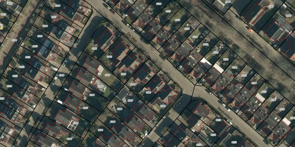 Het perceel waarop De Vlos 33 staat heeft een oppervlakte van 263 m². Dit is een middelgroot perceel. De perceeloppervlakte wordt geregistreerd door het Kadaster. Gedetailleerde informatie over de maten van dit perceel kunt u vinden in het rapport Kadastrale kaart met maatvoering van De Vlos 33.