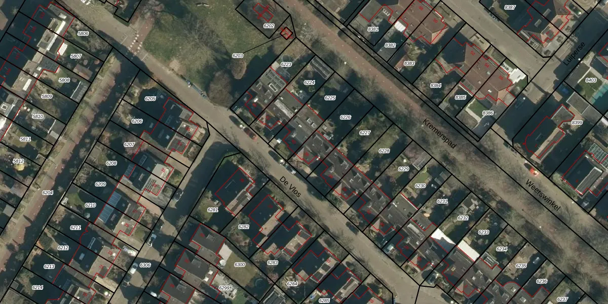 Het perceel waarop De Vlos 38 staat heeft een oppervlakte van 279 m². Dit is een middelgroot perceel. De perceeloppervlakte wordt geregistreerd door het Kadaster. Gedetailleerde informatie over de maten van dit perceel kunt u vinden in het rapport Kadastrale kaart met maatvoering van De Vlos 38.