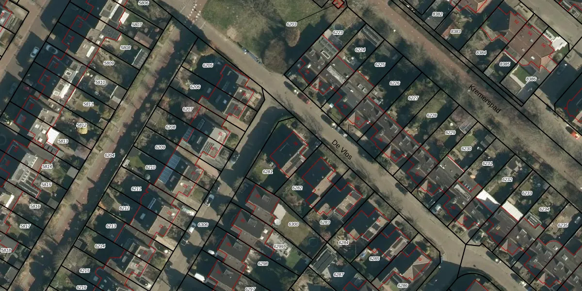 Het perceel waarop De Vlos 39 staat heeft een oppervlakte van 354 m². Dit is een groot perceel. De perceeloppervlakte wordt geregistreerd door het Kadaster. Gedetailleerde informatie over de maten van dit perceel kunt u vinden in het rapport Kadastrale kaart met maatvoering van De Vlos 39.